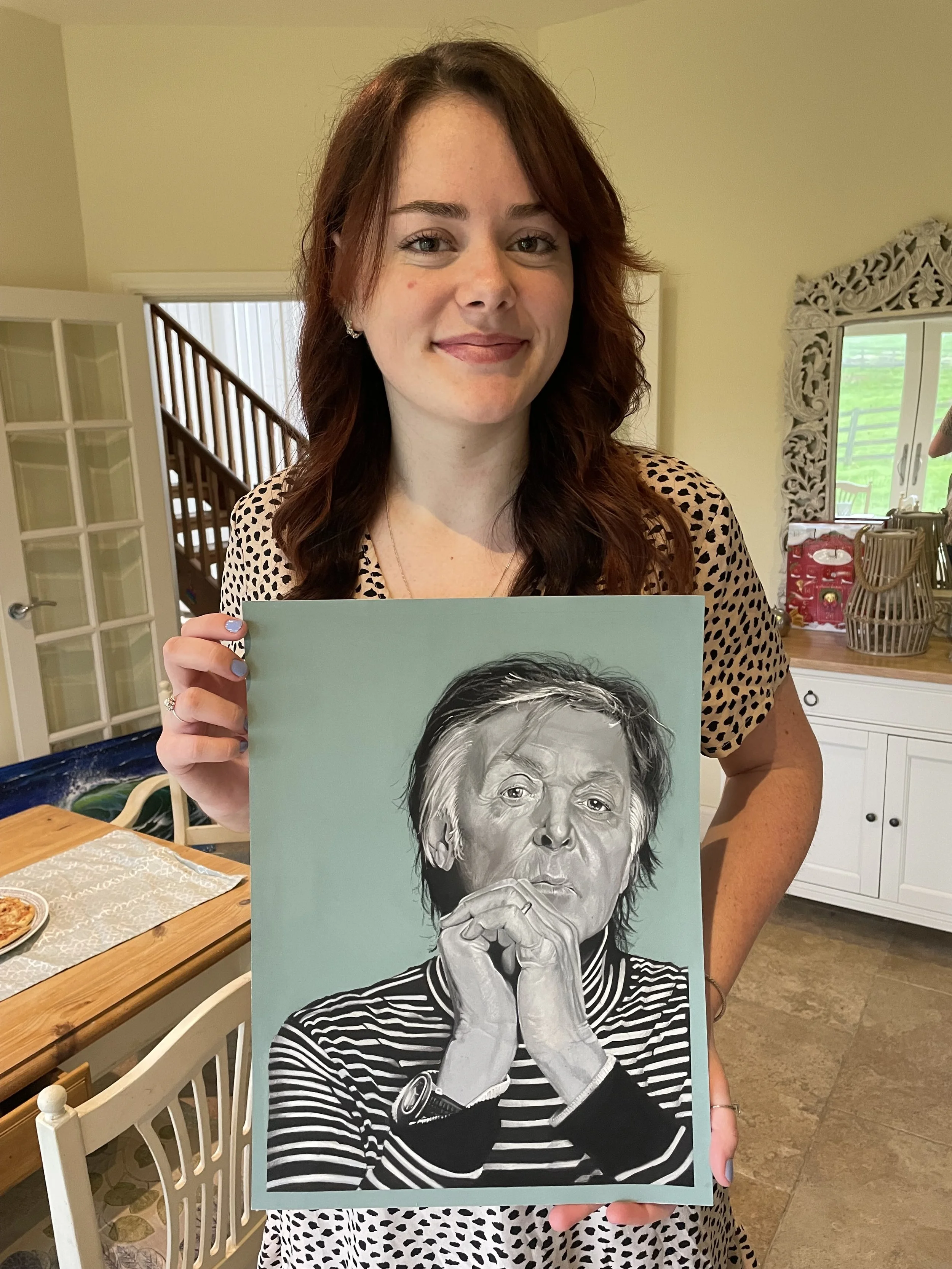 Daughter of Hamish and Brenda, she currently lives in Harrogate as a dedicated stay-at-home mom who also creates beautiful pastel artworks on the side. Her creations range from whimsical UK wildlife-inspired pieces to detailed portraits of John Lennon. She’s continually immersed in her artistic process, always busy working on her next pastel masterpiece.